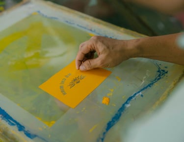 La tinta pasa a través de una malla o pantalla. Crea impresiones muy duraderas y con colores sólidos sobre materiales como textiles, madera o cristal. Es la técnica clásica para camisetas y artículos promocionales.